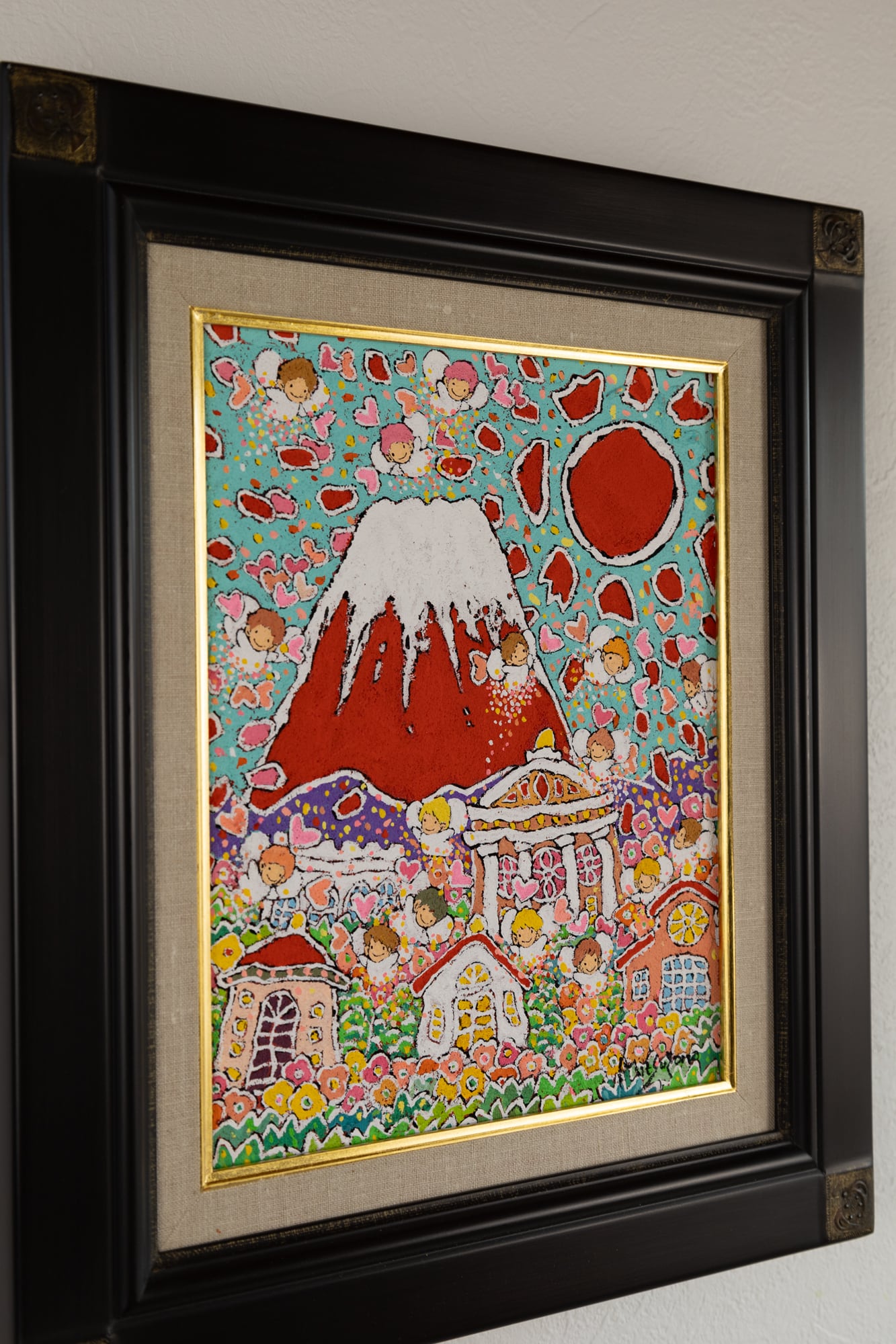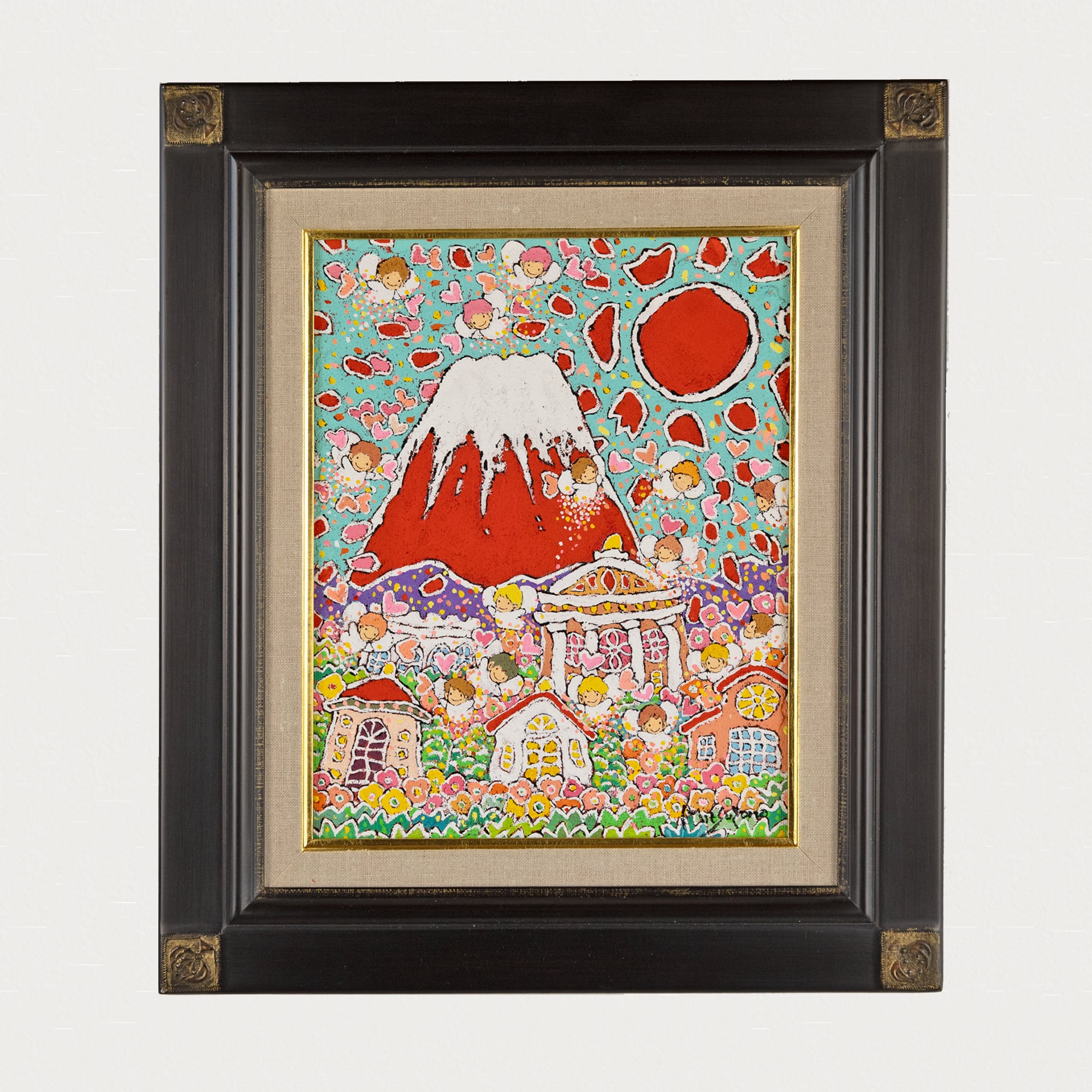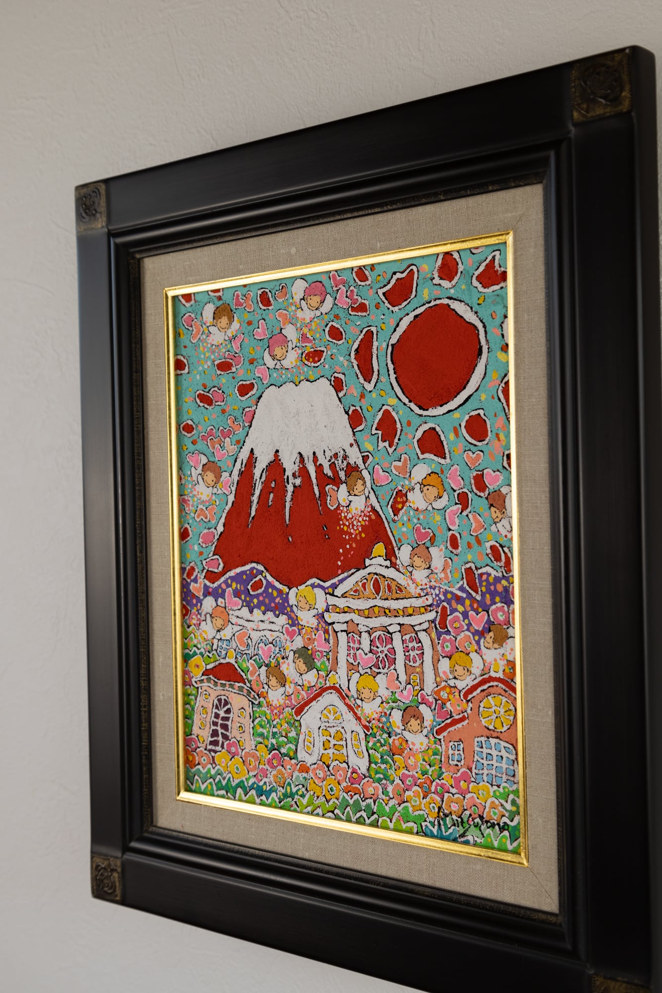 本作品は、富士山のふもとで、太陽の光を浴びながら花々と天使が咲き誇る、生命の喜びを表現した作品です。