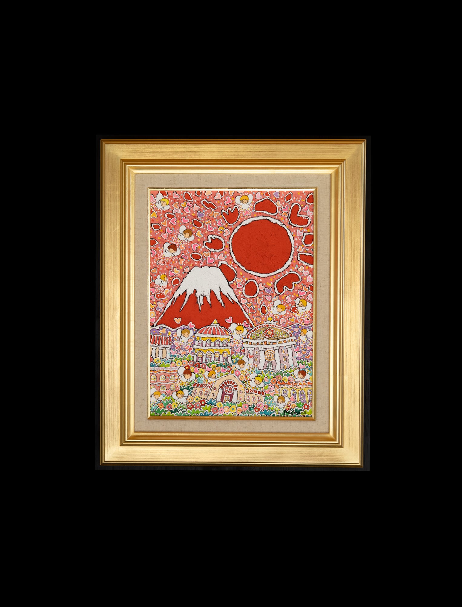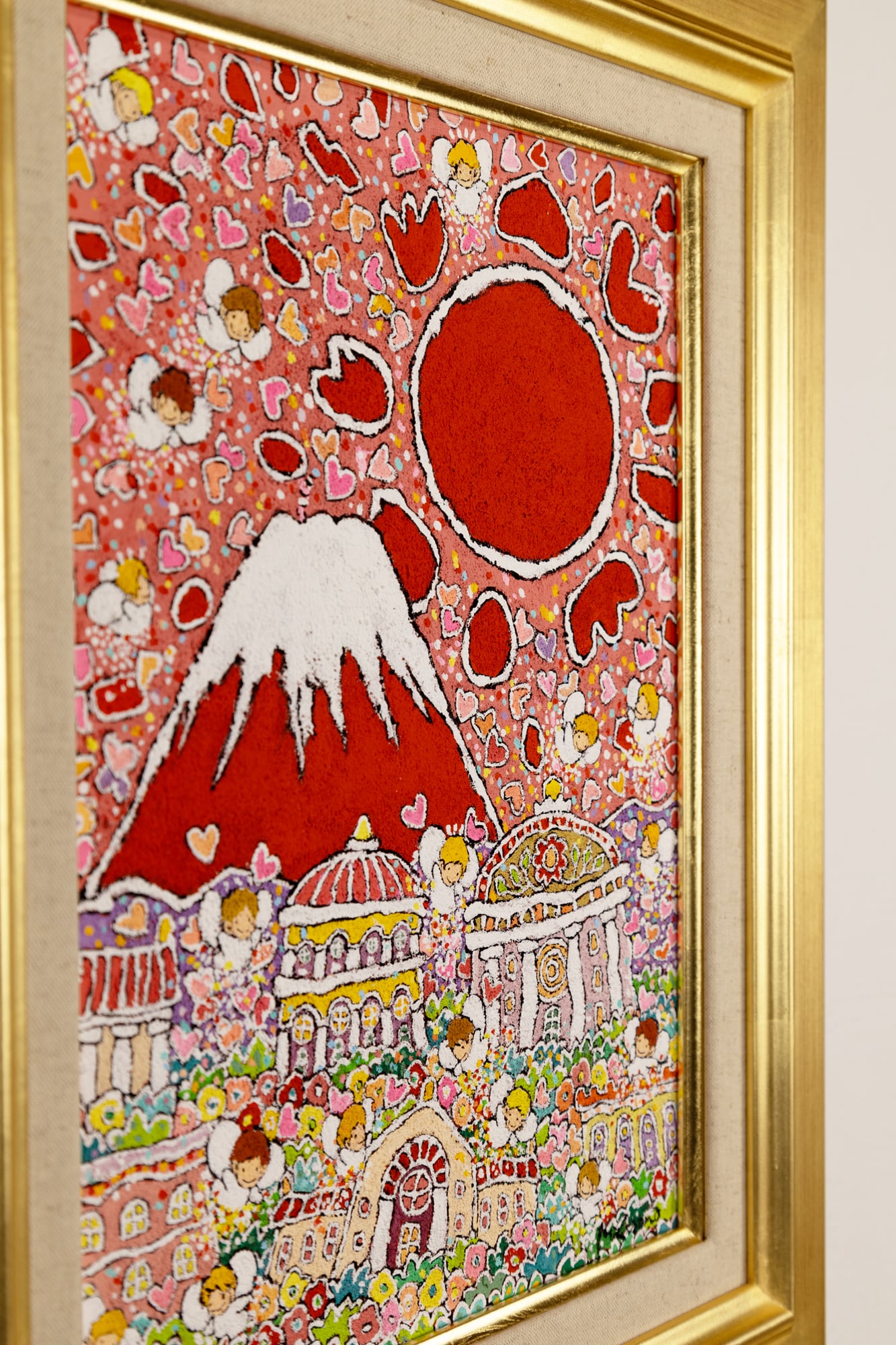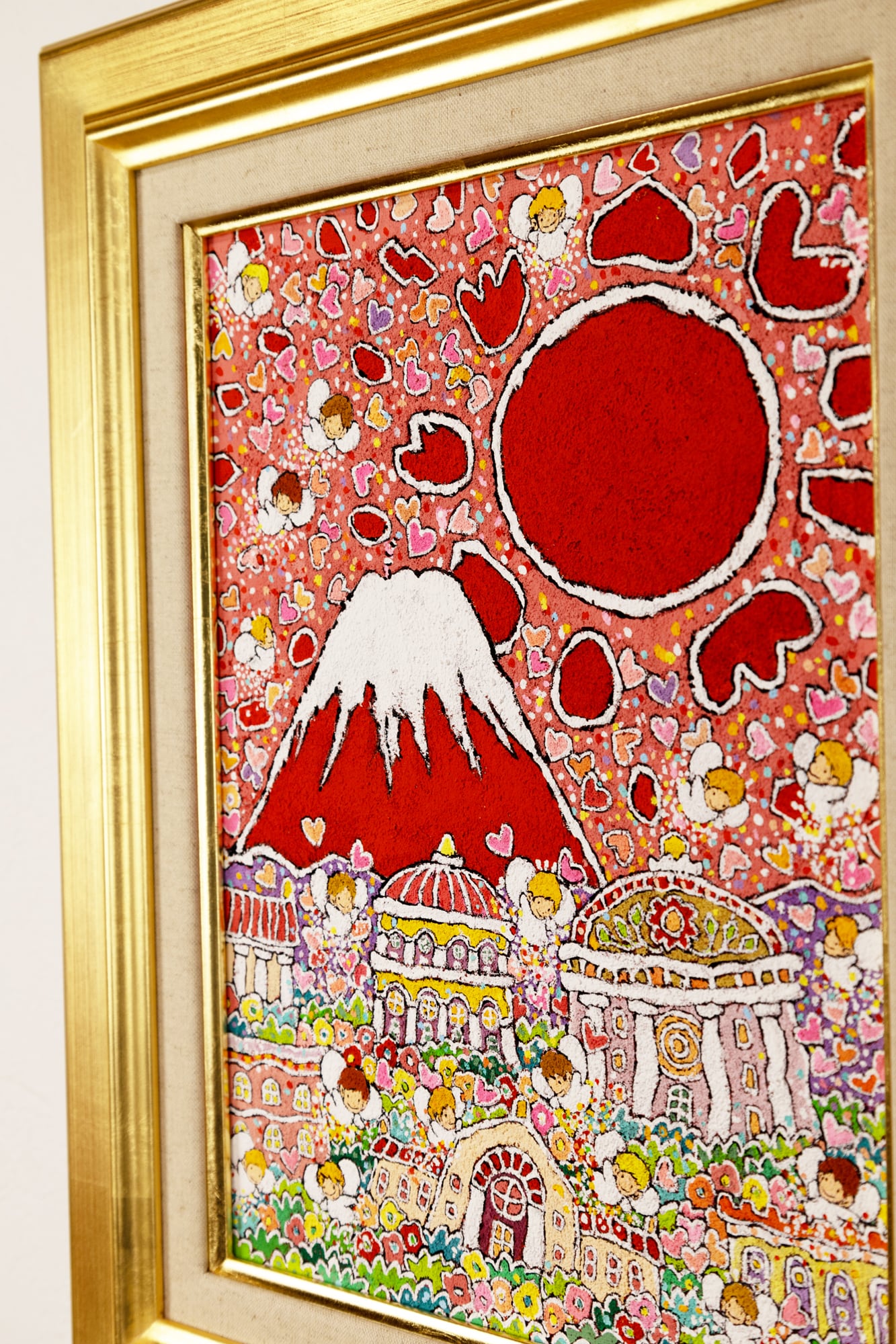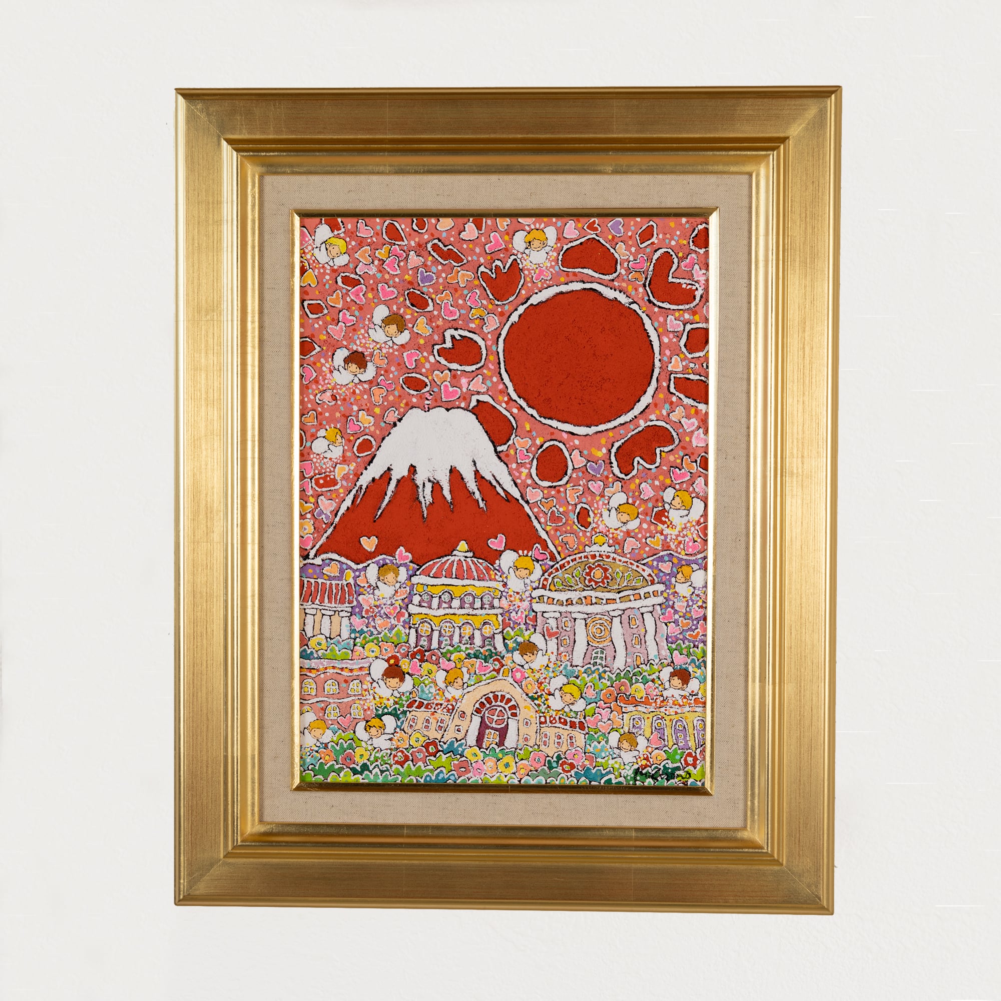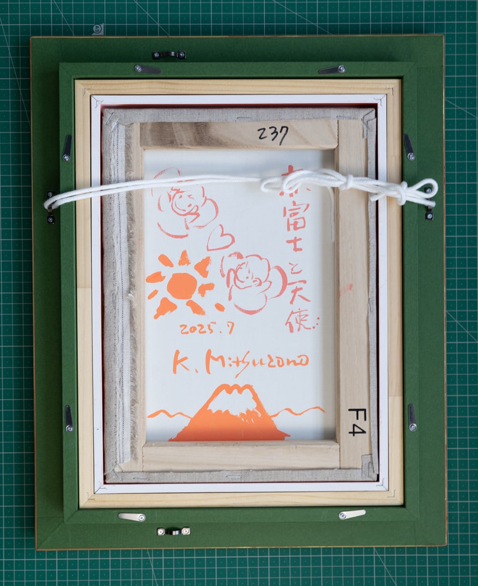 古来より吉兆とされる「赤富士」に、守護と祝福の象徴である天使の存在を重ね、成功・繁栄・希望への祈りを込めました。