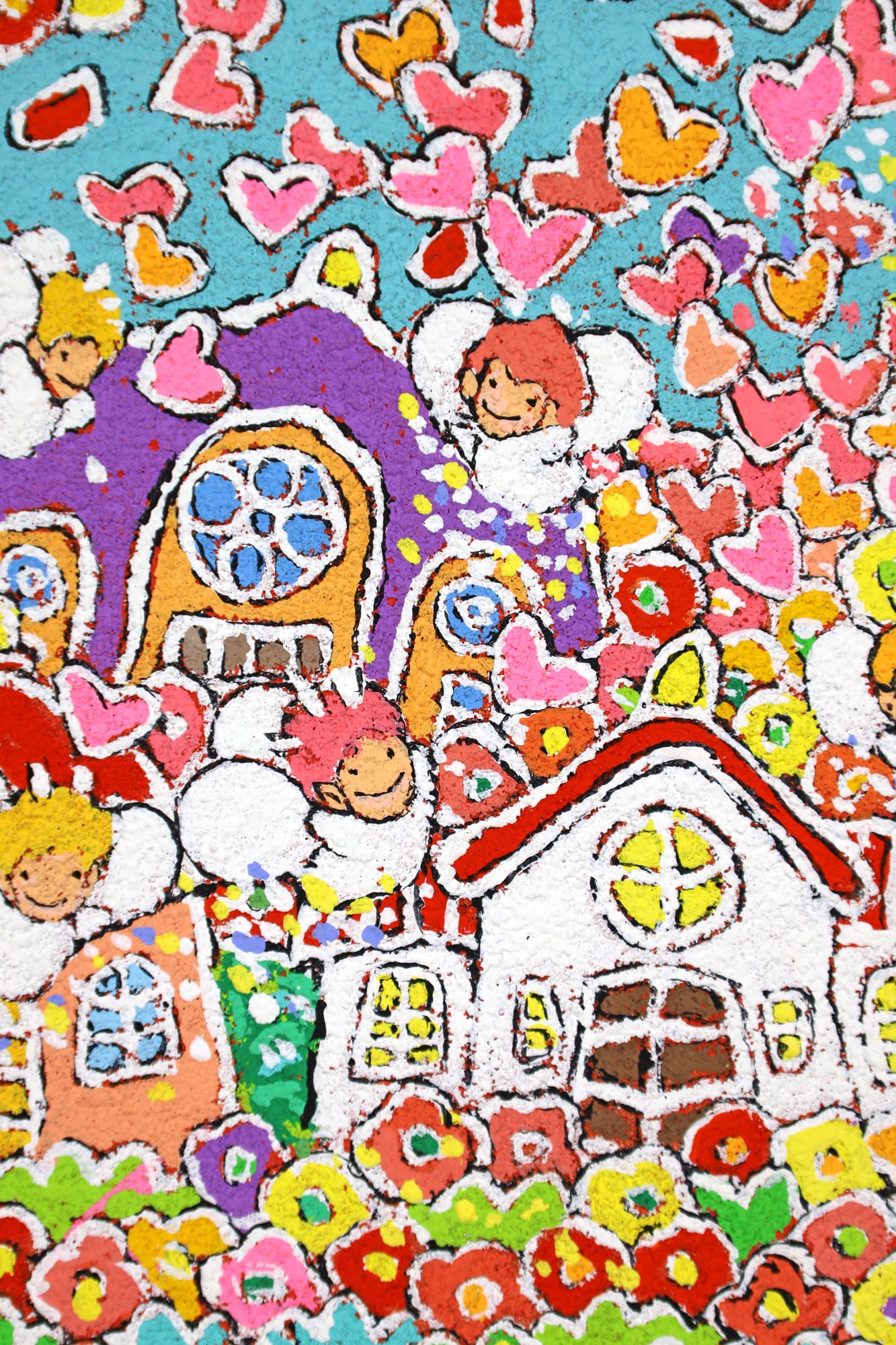 この作品「天使のいる街」は、日常の風景の中に潜む小さな奇跡や、目には見えない優しさを表現した一枚です。